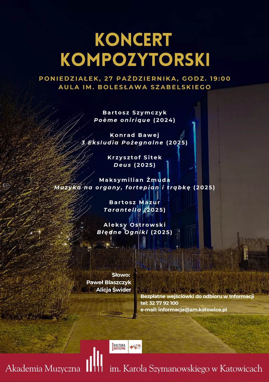 Bezpłatne wejściówki do odbioru w Informacji, tel. 32 77 92 100, e-mail: informacja@am.katowice.pl