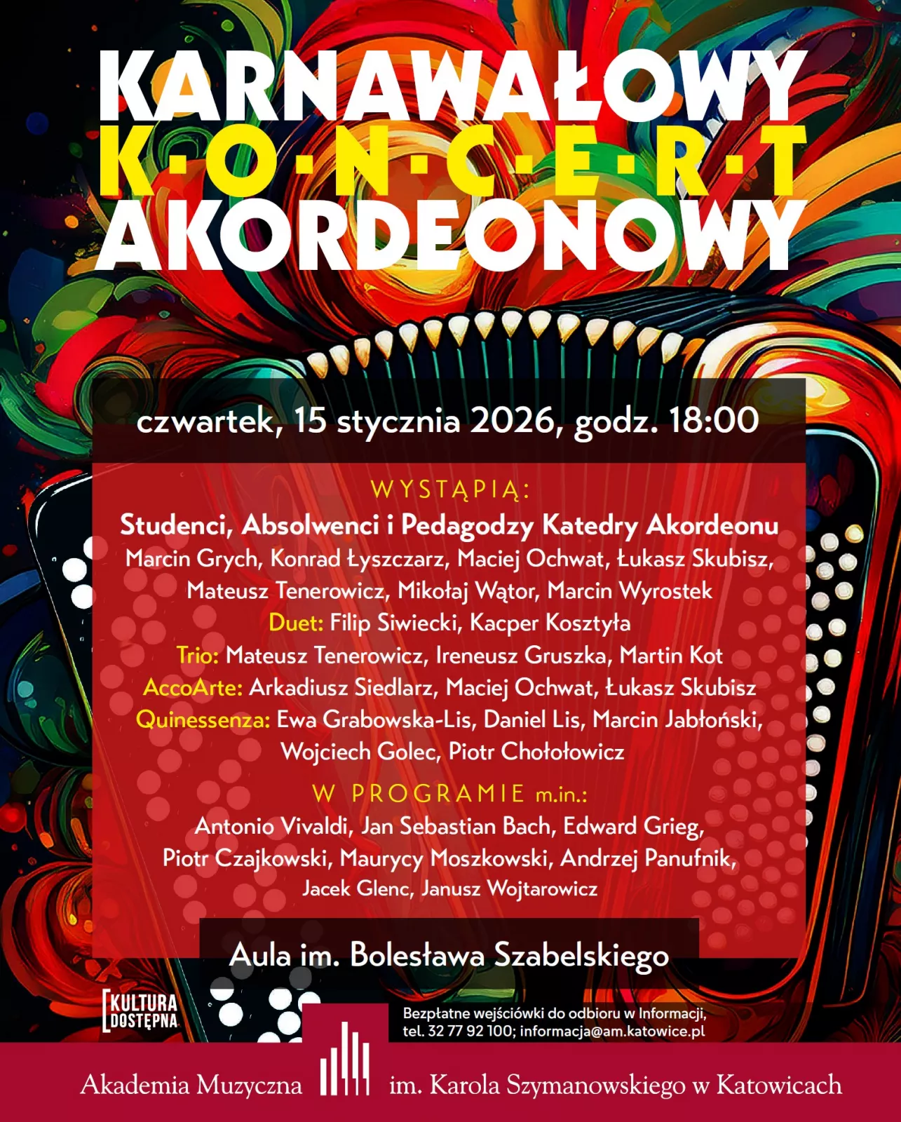 wystąpią: Studenci, Absolwenci i Pedagodzy Katedry Akordeonu