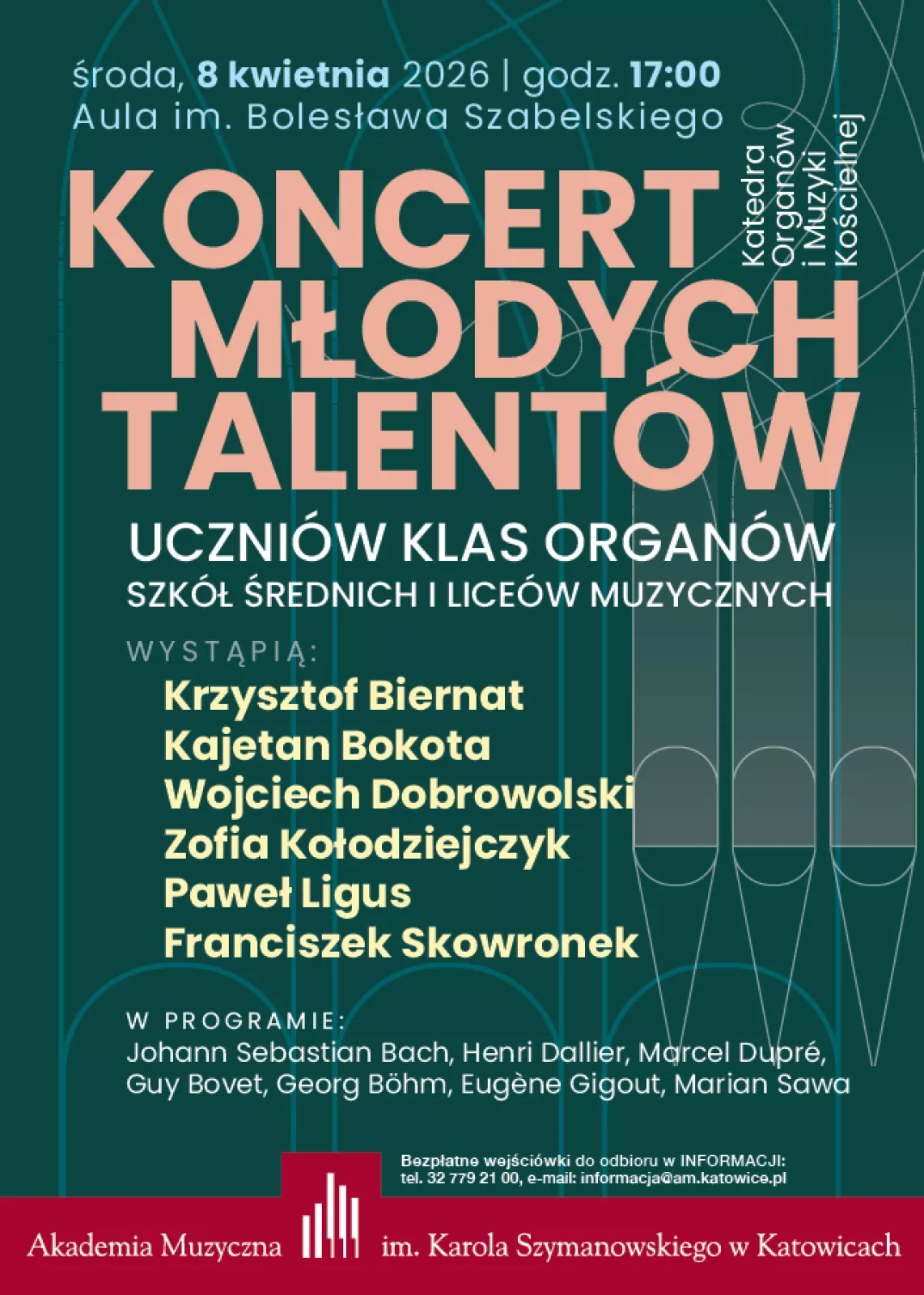 Bezpłatne wejściówki do odbioru w Informacji, tel. 32 77 92 100, e-mail: informacja@am.katowice.pl