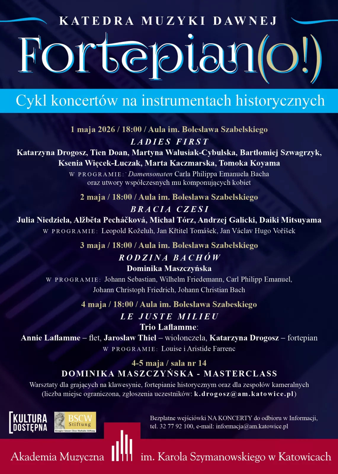 Bezpłatne wejściówki do odbioru w Informacji, tel. 32 77 92 100, e-mail: informacja@am.katowice.pl